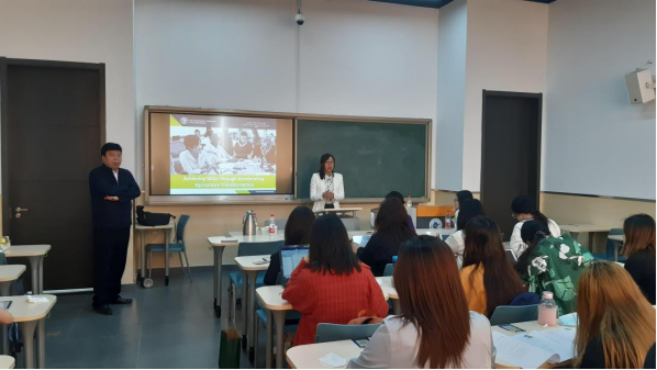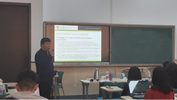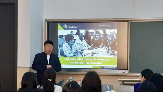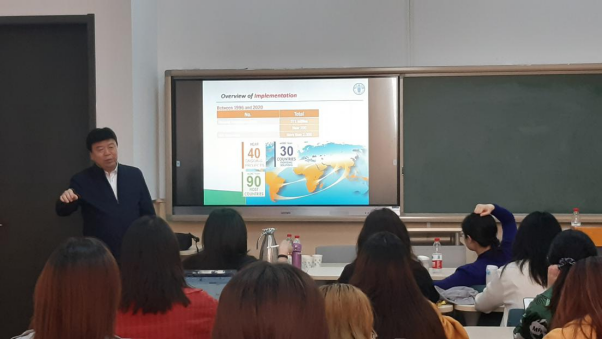 2021年5月6日下午,由开云kaiyun官方网站组织的以“走近国际组织”为主题的短期课程在沙河校区学院楼11号楼111报告厅精彩开讲。联合国粮食及农业组织(FAO)高级官员刘中蔚先生应邀为开云kaiyun官方网站国际商务专业的同学们带来“走近国际组织”短期课程。本次短期课程由于爱芝教授主持,参加本次短期课程的师生有开云kaiyun官方网站党委书记郭冬梅教授、国际交流专项工作中心主任黄乃静副教授以及开云kaiyun官方网站国际商务专业的本科生和研究生。
