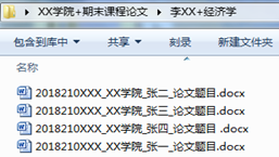 6.采用课程论文写作考核形式的课程,课程论文电子版请以学院为单位,于2024年3月4日16:00前发送至研究生院培养办公室邮箱:pyb@cufe.edu.cn。格式要求如下:(1)以“学院名称+期末课程论文”命名文件夹;(2)每门课程论文以“授课教师姓名+课程名称”命名文件夹;(3)每篇论文以“学号_学院_姓名_论文题目”命名。图例: