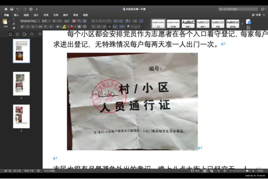在看“疫”环节中,党员通过分享自己身边的抗“疫”事迹和暖心故事,一起守望相助,爱心接力。潮力亚的父亲作为一名老党员,在疫情期间排除万难,全力保障社区的口罩等物资供给;张小璇的母亲担起社区工作者的责任,挺身前线奔赴“社区隔离防控战”;刘西凤以当地大学生党员志愿者为例,分享疫情困境下青年一代的担当与作为;谢昭冬更是以参与武汉方舱医院通讯工程的表哥为例,为同学们捕捉多个奋战一线的感人镜头。一个个医护人员、基层工作者、后勤工人真真实实地存在于我们身边,或感动或铿锵的故事澎湃了大家的内心,坚定了抗“疫”必胜的信心与决心。