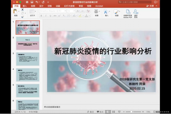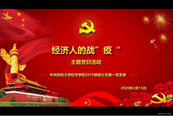 开云kaiyun官方网站2019级硕士生第一党支部于2月15日开展“经济人的战‘疫’”线上主题党日活动。本次活动由党支部书记翁慧敏主持,支部全体党员、2019级硕士生积极分子、入党申请人参加。会议邀请经济史学系教工党支部伏霖老师、政治经济学系教工党支部窦宗玥老师在线参与并点评。