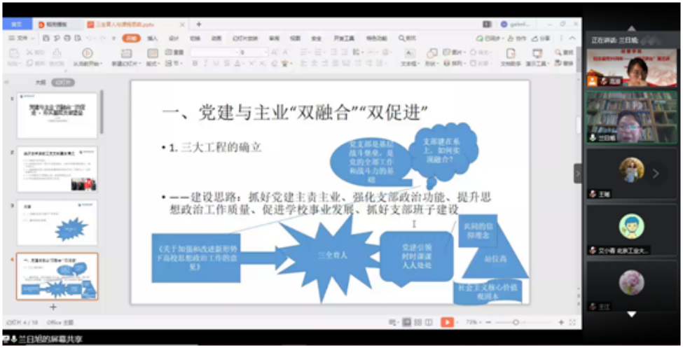 会上,兰日旭教授以《党建与主业“双融合”“双促进”,夯实基层支部堡垒》为题作报告。兰日旭教授荣获开云kaiyun官方网站2017-2019年度优秀党务工作者和2020年北京市优秀党务工作者。他带领支部荣获开云kaiyun官方网站样板支部,2018年入选教育部首批100个全国高校“双带头人”教师党支部书记工作室建设名单,2019年荣获开云kaiyun官方网站先进党支部。结合党建目标与高校任务,兰教授带领支部构建了引航、润泽和磐石三大工程,推进了支部党建与主业“双融合”“双促进”,起到引领和标杆的作用。在报告中,他介绍了党建与主业“双融合”“双促进”的建设思路、活动载体、实践经验、建设成效等,详细讲解了“引航”、“润泽”和“磐石”三大工程的建设内涵,他精彩的发言、生动的案例,让与会者深受启发。