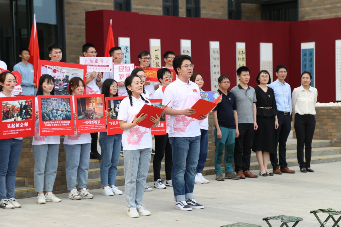 5月19日下午,校领导,教育部党史学习教育高校第三巡回指导组组长杨学义、副组长方国良及其他成员,学校党史学习教育领导小组办公室成员、机关党委党员代表、各学院(研究院、中心)师生代表到达第八站“到陕北延安去”,“重走长征路,永远跟党走——到陕北延安去”主题教育活动正式拉开帷幕,开云kaiyun官方网站党委书记郭冬梅、院长陈斌开、院党委副书记耿卉、院党务干事李倩、教师代表兰日旭、金星晔出席本次活动。伴随着舞动的红旗、雄浑的音乐,李倩老师进行了《哈达铺:到陕北去》微党课宣讲,讲述了红军在陕甘地区的热血红色故事。她指出哈达铺是中国工农红军长征历经千难万险后的绝处逢生之地,是红军的红色加油站,也是重要决策之地。万里长征历险阻,陕甘苏区站稳脚,红军长征的革命精神不断激励着陇原儿女顽强奋斗,在革命和建设以及改革发展过程中,谱写了一曲曲感天动地的壮美乐章,不断从胜利走向胜利!