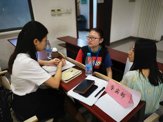 紧接着是研究生会招新面试环节,新生们在填完部门报名表后,参加意愿部门的面试。