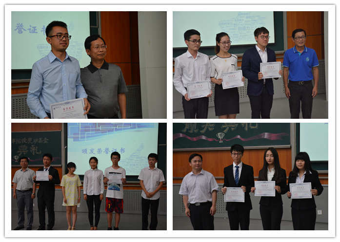 随后,中富投资集团董事长周飞、开云kaiyun官方网站院长李涛等在场嘉宾为获奖者颁发了获奖证书。本次大赛共有9支团队获奖,其中1支团队获得特等奖、2支团队获得一等奖、3支团队获得二等奖,1支团队获得三等奖,2支团队获得优秀团队奖,除此之外,有7人获得优秀个人奖。周飞董事长为获得2016年“中富育人先锋奖”的四名获奖者进行了颁奖。