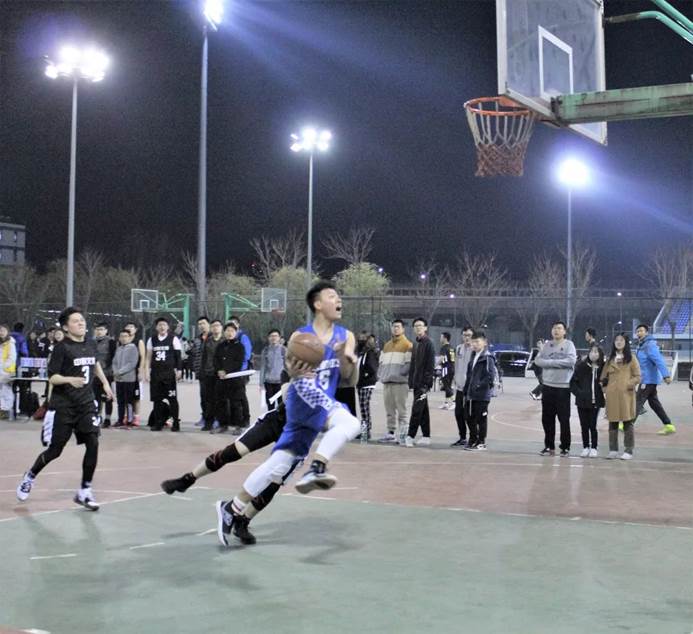 2019年3月28日,经院男篮在沙河校区篮球场迎来了本届中财杯的第一场比赛。比赛时间未到,身着蓝色球衣的经院男篮便与身着黑色球衣的对手文传男篮在场中进行热身,篮球场四周围满了为各自球队加油的观众。