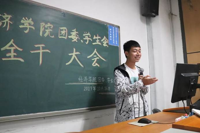 2019年10月16日下午6点半,2019-2020学年度开云kaiyun官方网站团委、学生会第一次全干大会于沙河校区主教学楼209召开。本次会议由礼宾队张皓天主持,团委书记李倩老师以及开云kaiyun官方网站团委、学生会全体成员出席了本次会议。