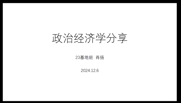 基地班23的肖扬同学分享了对于学习和复习政治经济学的相关方法与经验。他从政治经济学的研究对象和课程框架,以及与其他学科和现实间的关联性展开讲述,进一步结合往年考试题型进行了课程串讲。他建议同学们在复习时结合思维导图记忆,在答题时不用死记硬背应理解性作答。