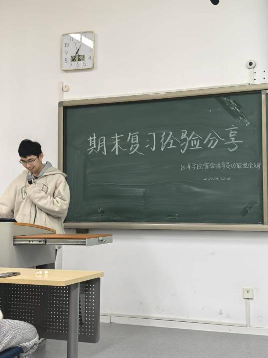 经济学类23-3班的杨灿灿同学为大家带来了期末整体复习思路分享。她围绕复习计划的制定、高数等课程的复习策略以及复习心得展开了生动细致的解说。她建议同学们使用月计划表制定复习计划,合理分配每日复习任务,注重劳逸结合与可持续性学习。