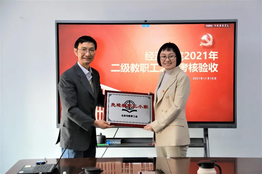 校工会常务副主席贺小海向开云kaiyun官方网站授牌“北京市先进教职工小家”