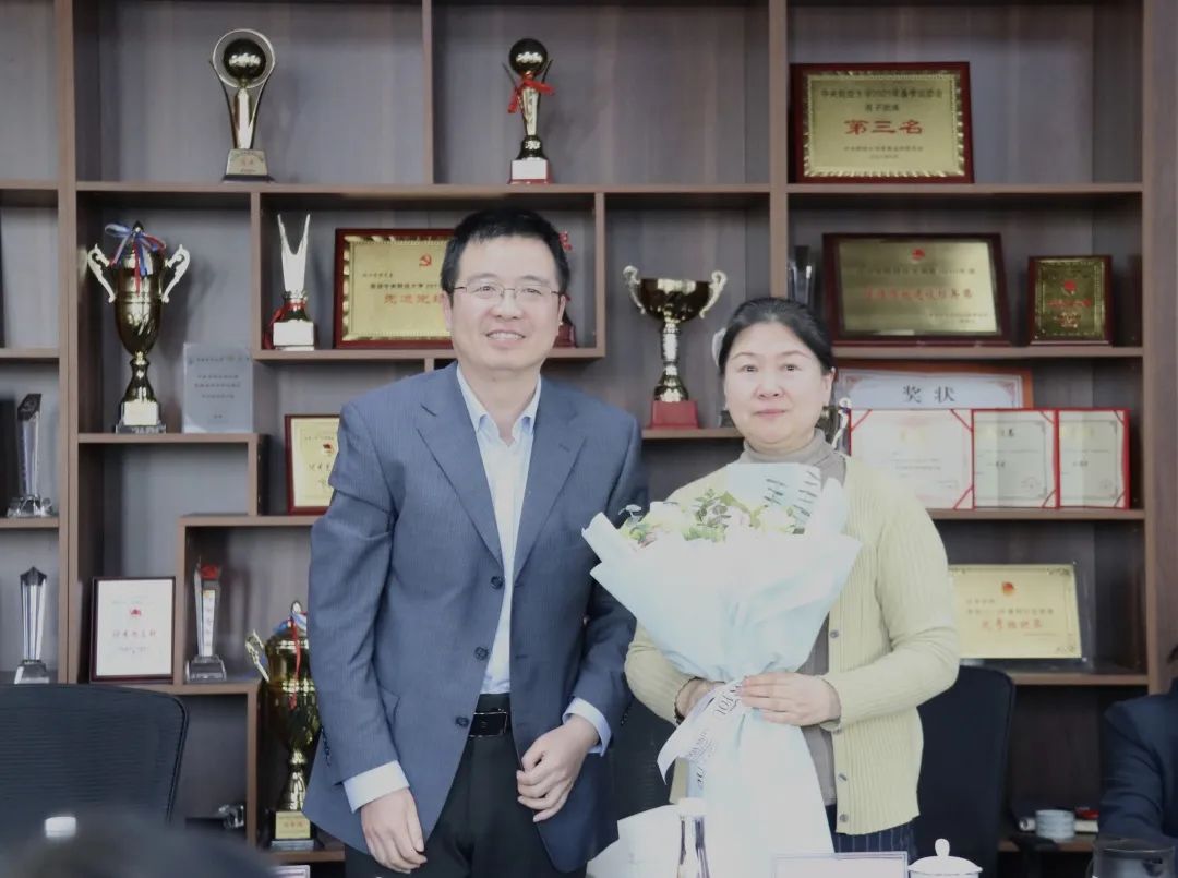 回首执教生涯,笑看桃李芬芳。座谈会上,学院教学科研管理办公室主任祝伟向胡燕老师献花,对胡燕老师几十春秋染芳华、桃李满天的辛勤耕耘、默默奉献表示由衷的感谢;学院分工会主席刘滨代表分工会向胡燕老师赠送礼物,表达了美好的祝愿和祝福。