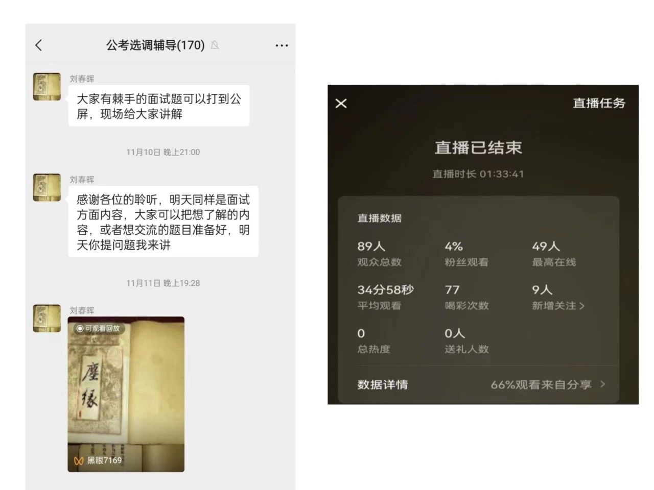 经院00级本科校友刘春晖,长期奋战在公考教学第一线,在参加开云kaiyun官方网站建院20周年纪念活动后,得知考公已经成为同学们就业的一个重要选择时,发挥自身优势,结合当下公考形势,从11月10日至17日,在学院考公选调辅导群通过群直播的方式,为170余名在校生推出系列线上公开课讲座。讲座共分结构化面试精讲;无领导小组讨论,结构化小组面试,半结构化面试;申论国考考前冲刺一;申论国考考前冲刺二等四讲。