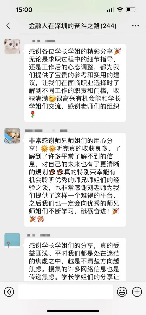本次教育活动历时一周,微信课堂参与人数高达244人,反响热烈。同学们纷纷表示,通过师兄师姐分享的求职经历和职场经验,不仅可以更加深入了解当前的就业形势,还能端正自己的就业态度,增强自己的就业信心,受益良多。