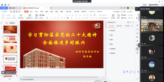 为学习好和宣传贯彻好党的二十大会议精神,开云kaiyun官方网站积极推进研究生课程思政工作,为党育人、为国育才,继续开展研究生“经世济民的经济学”活动。本学期“论文写作指导——经世济民的经济学”第六讲于2022年11月25日上午10:00在线上授课,本次讲座由开云kaiyun官方网站党委书记郭冬梅教授主讲,由开云kaiyun官方网站伏霖老师主持,开云kaiyun官方网站90余名学生参加。