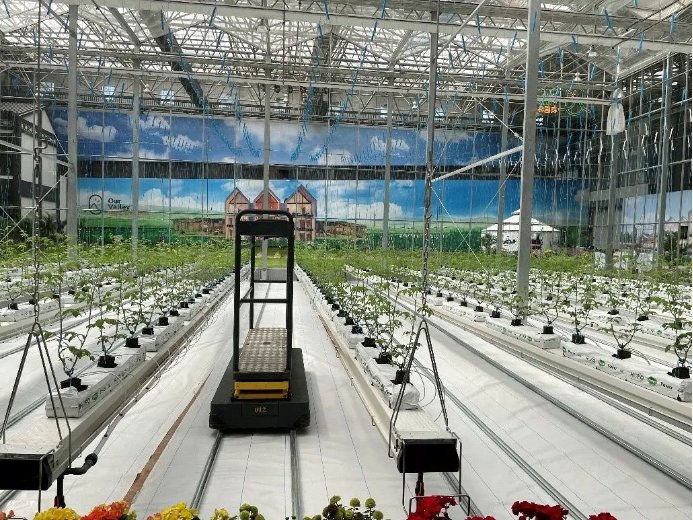 接着,工作人员带领支部成员参观了现代农业样板温室大棚和主要农作物宏福柿,温室内绿意盎然,植株整洁。宏福集团工作人员介绍说:宏福柿秧苗最高可长到15米,番茄从育苗到出果,全程不用一滴农药,全部采用熊蜂授粉和以进口椰糠为基质无土栽培的先进生产方式,所有种植环节严格执行欧盟操作规范。在种植技术方面,番茄依托智能温室种植,温室环境采用智能计算机系统控制,为植株生长创造最佳环境。