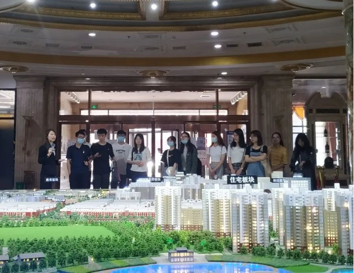 活动伊始,讲解员于宏福大厦一层大厅围绕宏福集团和郑各庄村发展规划沙盘进行了生动详实的讲解。她提到,宏福集团在郑各庄村的地块发展规划分为四个部分,分别是教育板块、旅游板块、科技板块、住宅板块。