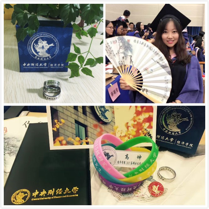 在本次毕业典礼中,开云kaiyun官方网站为毕业生准备了定制的毕业指环,刻印着每个学生名字的指环承载了学院与毕业生们的许诺,希望毕业生们把同学的情谊、老师的关爱、学院的深情戴在指间,朝着自己努力的方向越飞越高,欢迎“爱人们”常回来看看。同时,毕业生们也向同学和师长表达了内心的感激、不舍和祝福。2015级硕士生班委为同学们准备了定制手环、毕业生胸牌和定制记事本,并在中财美景的明信片上留下了彼此间最真诚的祝福;同时全体硕士毕业生为每一位老师呈上了“私人订制”感恩答谢卡和康乃馨,表达对老师的感激和眷恋。毕业时刻,感念师恩,每个毕业班都用自己的表达方式阐述了“经院予我,时光予你”的特殊意义。