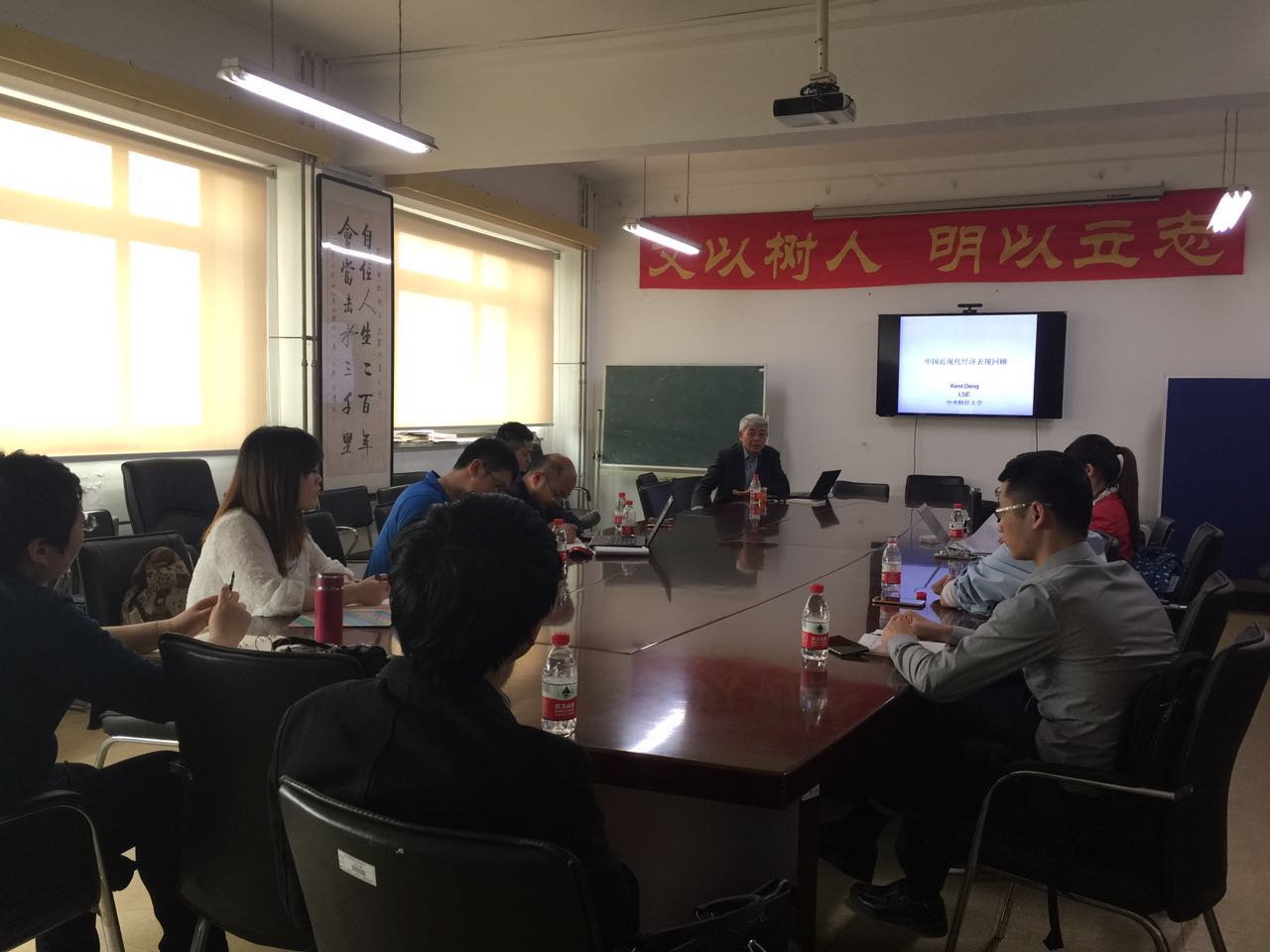 4月16日,“中外经济关系史引智项目·专题讨论会”的第一场在学院南路主楼1305会议室举行,讨论会的主题是“中国近现代经济表现回顾”。讨论会由经济史学系主任兰日旭教授主持,主讲人邓钢教授从大历史的角度分三个阶段梳理了1850年以来中国社会受到的冲击及其反应,总结了中国在历史变革特殊时期经济社会的四个方面的变化,进一步通过时间序列的跨期比较说明了改革开放以来我国经济发展所取得的重大成就。讨论会期间,来自开云kaiyun官方网站的师生分别就邓钢教授的相关观点进行了深入交流。开云kaiyun官方网站包括刘滨、兰日旭、乔恒、伏霖等在内的老师参与了本次讨论会。此次邓钢教授来校系列学术活动受到“开云kaiyun官方网站引智·中外经济关系史领域”项目的支持。