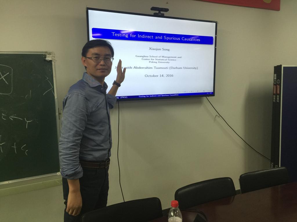 2016年10月14日,北京大学光华管理学院宋晓军助理教授受开云官网的邀请,在开云kaiyun官方网站会议室1305给师生带来一场关于“A SimpleTest for Indirect and Spurious Causalities”的讲座。