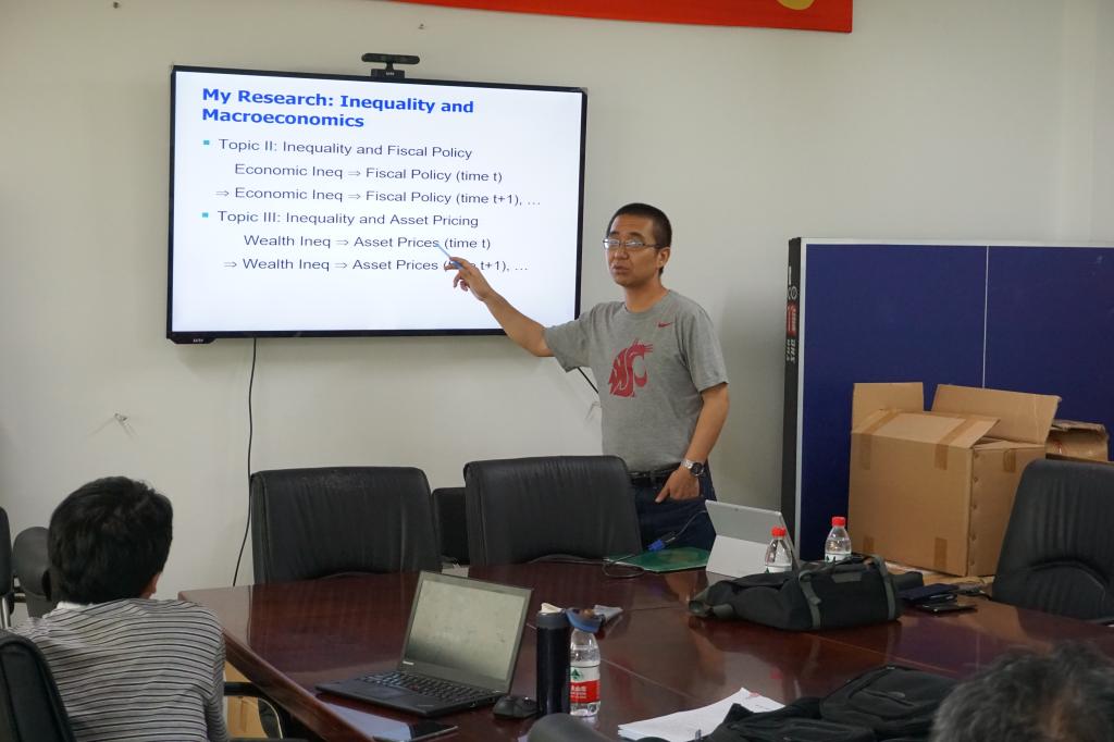 2016年6月22日,美国华盛顿州立大学白金辉教授受邀到开云官网参加城市贫困研究团队研讨会,会议由陈斌开副院长主持。此次研讨会分两个模块,首先由白金辉教授介绍自己有关贫困问题的研究成果,其次每位参会教师向白教授汇报自己对城市贫困的关注点、研究思路、存在的困难等。