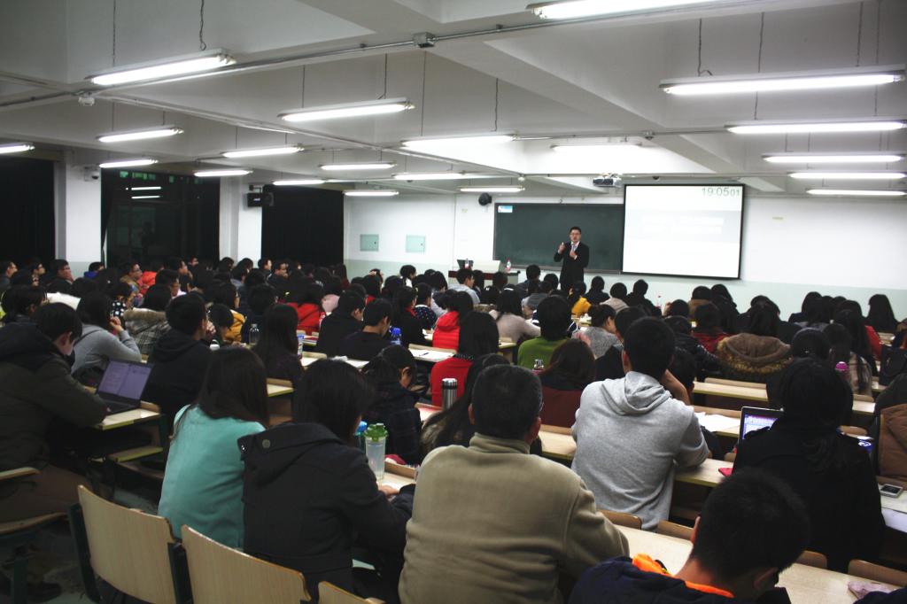 11月24日晚,开云kaiyun官方网站第二次就业沙龙:大学生就业指导系列讲座--2015招聘面试关键技巧培训在学院南路校区主教217成功召开,邀请到了资深面试官王炳森老师为我校学生带来面试方面的资深培训与经验分享。王老师从银行、国企的群体面试、结构化面试等方面入手,详细介绍了面试官情况、面试流程、面试礼仪、注意事项等方面的知识,直接受益学生超过200人。