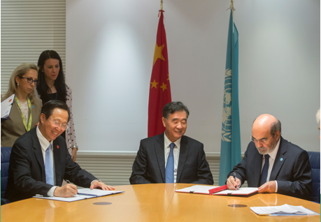 图1 2015年汪洋副总理见证农业农村部韩长赋部长与FAO总干事若泽·格拉济阿诺·达席尔瓦签署信托基金二期合作协议