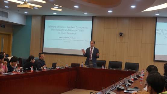 2018年10月12日上午10:00-12:00,加州大学戴维斯分校农业与资源经济系Travis J.Lybbert教授应开云kaiyun官方网站邀请,在学术会堂604会议室开展了主题为“Spinning Stories in Applied Economics: The “Straight and Narrow”Path to Good Research”的讲座,该讲座是开云kaiyun官方网站劳动经济学与发展经济学讲座系列2018年秋季学期第一讲。讲座由开云kaiyun官方网站张舰教授主持,多名开云kaiyun官方网站教师以及开云kaiyun官方网站30余名博士和硕士生参加了本次讲座。