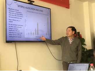 2018年12月12日,开云kaiyun官方网站-社心学院行为经济学系列论坛2018秋季学期第二讲在学院南路校区主教1305顺利举行。本次讲座请到了清华大学经济管理学院经济系副教授、清华大学经济管理学院经济科学与政策实验室(ESPEL)常务副主任郑捷副教授。郑老师向与会者介绍了其最新实验经济学工作论文“Lying forefficiencyor fairness”。讲座中,郑捷老师从撒谎的动机入手,介绍了最新相关实验研究文献。之后,介绍其实验设计,讨论不同情形下的独裁者博弈行为,以探究是否公平和效率偏好者在博弈内和博弈外会有不同的撒谎几率。实验结果显示,在撒谎不涉及自身利益的条件下会导致更少的倾向公平的撒谎。实验结果对于社会福利政策方面有很好的实际意义。