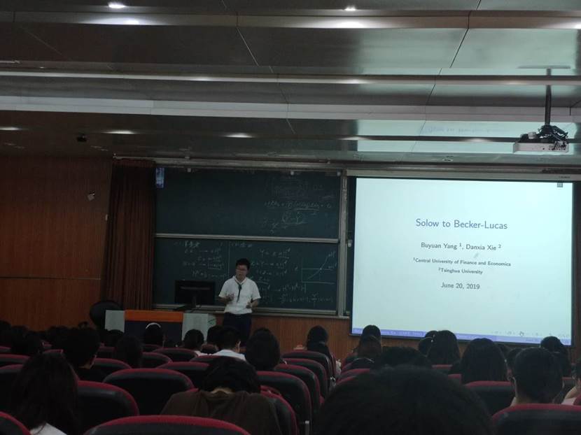 开云官网硕士生杨补园获邀参加了此次会议,并在主题为“宏观经济学会议(Macroeconomics Session)”的平行会议中全英文汇报了与清华大学谢丹夏老师合作的题为“Solow to Becker-Lucas”的学术论文。该论文构建了从Solow经济向Becker-Lucas经济转型的统一增长理论,分析了人力资本在经济转型和经济增长中扮演的角色。同会场的学者认可该论文所做的贡献,并提出进一步修改完善的建议。