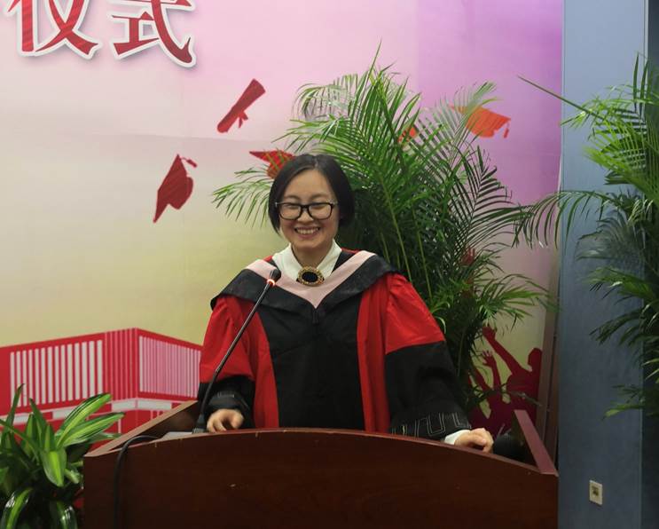 教师代表致辞环节中,赵丽芬教授首先祝贺毕业生们,读书学习是艰辛的过程,同学们经历多年时光后系统掌握了知识的同时拓宽了自己的视野,同时对培养这些学生的家长和老师们致以崇高的敬意;其次感谢老师们对教师职业的执着与热爱、“2+5”、“白+黑”的付出,并且感谢同学们对老师的理解与爱;最后祝福同学们,希望同学们牢记“勤奋、执着、担当、诚信”8个字,“勤恳做事、踏实做人”,处理好“工作与生活、事业与家庭、拼搏与健康”的平衡,祝福毕业生家人们身体健康、生活幸福。青年教师代表徐翔副教授致辞中,以“记忆”为主题寄语毕业生,回忆自己当年的博士毕业典礼,表示十分理解毕业生们对未来的期待、对身份转换的迷惘、对同学情谊的不舍;随后追忆开云kaiyun官方网站的发展历史,从经济系到开云kaiyun官方网站发展壮大的心路历程;以及追溯经济学的发展之路,号召毕业生们作为经济学科的传人,在汲取专业知识和老师们的人生经验后,应秉承“经世济民”的精神,为国家和社会做出贡献。