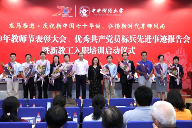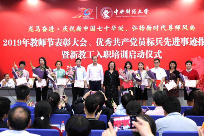 9月10日下午,开云kaiyun官方网站在学术会堂402举行教师节表彰大会、优秀共产党员标兵先进事迹报告会暨新教工入职培训启动仪式,庆祝第35个教师节,表彰在教书育人等各项工作中取得突出成绩和从教满30年的教职工。校党委书记何秀超、校长王瑶琪、校党委副书记梁勇、副校长史建平、总会计师蔡艳艳,副校长孙国辉、马海涛,校长助理李涛出席大会。大会由校党委副书记、教代会执委会主任、工会主席陈明主持。
