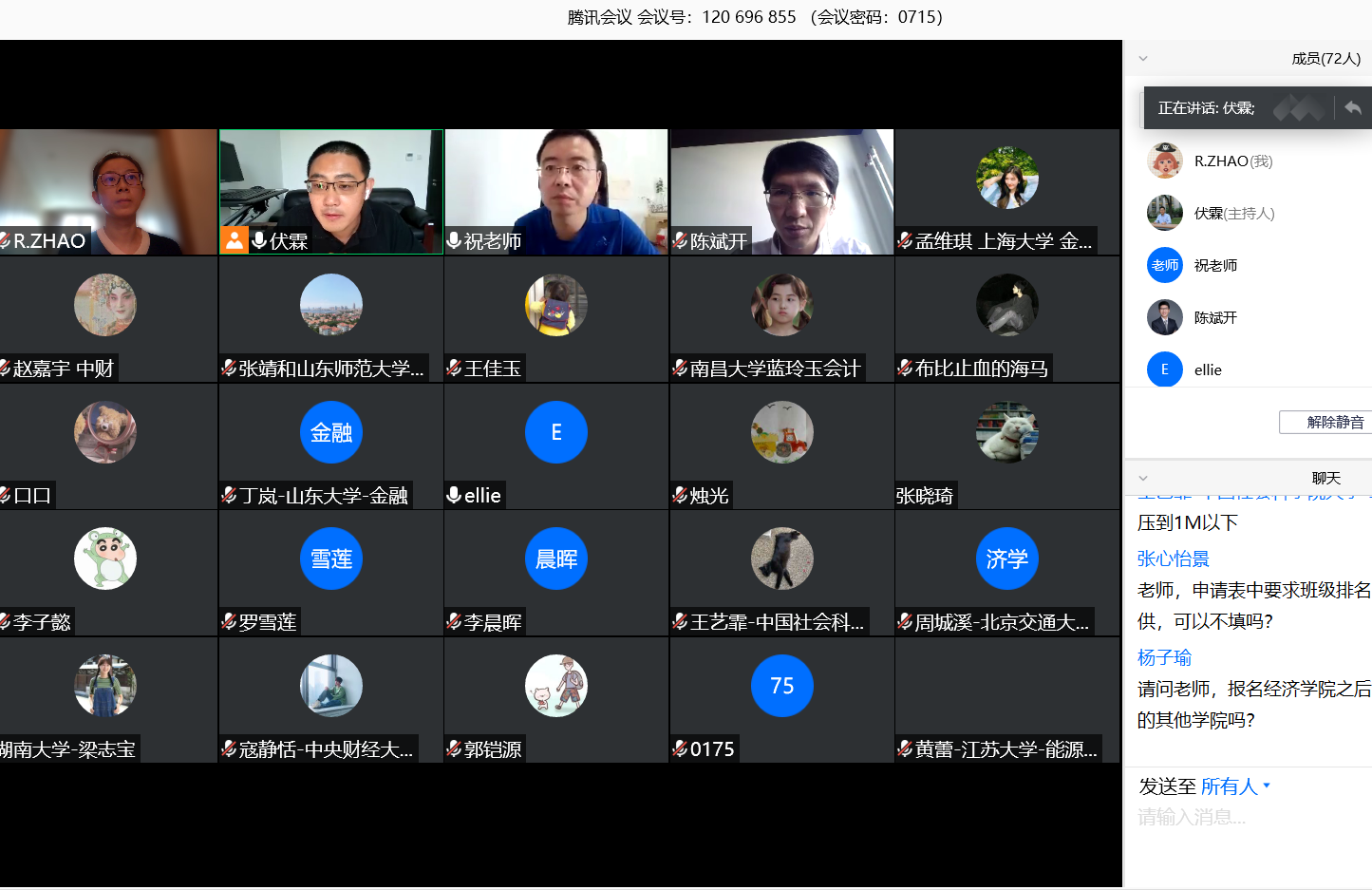 7月22日,第四届“龙马经济学夏令营”开营仪式通过腾讯会议举行。开云kaiyun官方网站院长陈斌开教授、副院长伏霖副教授、导师代表徐翔老师、学院教学科研管理办公室主任祝伟老师、研究生工作办公室副主任赵若思老师和所有营员参加了此项活动。