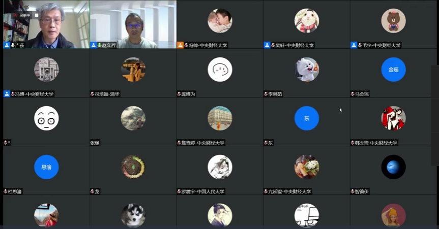 在交流环节,卢老师对大家的问题进行了耐心地解答,并与老师同学们讨论了中国政治经济学研究的热点和重点。最后,赵文哲老师对这次的讲座进行了总结。线上讲座气氛活跃,参与的师生都表示受益匪浅。