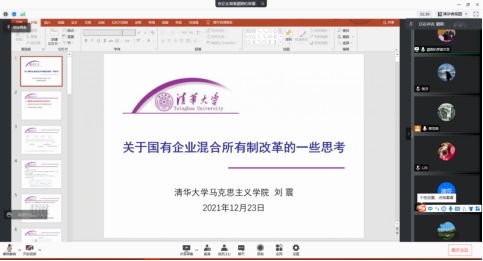 2021年12月23日下午15:00,清华大学马克思主义学院长聘副教授、博士生导师刘震应开云kaiyun官方网站樊茂清教授邀请,开展主题为“关于国有企业混合所有制改革的一些思考”的讲座,本次讲座通过腾讯会议平台线上举行,刘震老师受到了老师和同学们的热烈欢迎!开云kaiyun官方网站樊茂清教授主持了本次线上学术交流会。