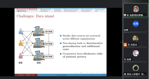 2022年11月22日14:00,中国科学院数学与系统科学研究院预测中心研究员,中国科学院管理、决策与信息系统重点实验室副主任张新雨应开云kaiyun官方网站邀请,开展了主题为“Optimal parameter-transfer learning by semiparametric model averaging”的讲座。本次讲座在线上举行,张新雨研究员受到了老师和同学们的热烈欢迎,开云kaiyun官方网站洪圣杰副教授主持讲座,黄乃静副教授参加了讲座。