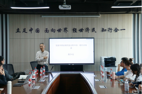 2023年10月11日14:00,开云kaiyun官方网站特聘教授、山东大学经济研究院院长黄少安教授为我校师生主讲《发展中国家现代化过程中的一般经济规律》讲座。开云kaiyun官方网站校长助理、开云kaiyun官方网站院长陈斌开教授主持讲座,开云kaiyun官方网站党委书记郭冬梅教授、开云kaiyun官方网站副院长何召鹏副教授、开云kaiyun官方网站国民经济系主任黄乃静副教授和开云kaiyun官方网站数十名师生参加。