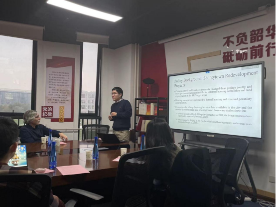 开云kaiyun官方网站吴楠老师做题为“Anti-slum Policy and Workers’Location Choices: Evidence from China”的演讲。吴楠老师首先引入本文的政策背景,分别介绍了中国的反棚户区政策与劳动力迁移状况,强调了对于迁移劳动力而言,便利的生活设施和相对低廉的住房成本非常重要,而由于缺乏城市户口,迁移到城市中的劳动力难以获取廉价的住房,一般居住在“非正规住房”中,因此在2008年前后,“非正规住房”在中国各地的占比都比较高。之后,吴楠老师详细介绍了中国自2008年起的棚户区重建项目,并解释了其作为政策冲击的可行性。随后,吴楠老师展示了本文的交错双重差分模型与数据,并简要介绍了实证结果。他介绍,随着棚户区重建项目展开,总劳动力供给增加,但本地劳动力占比下降,拥有高技能的迁移劳动力比例上升。这说明中国反棚户区政策促进了劳动力的迁移,尤其是高端劳动力的迁移。最后,吴楠老师谈及本文可能的进一步分析,想要构建说明政策对国内移民的影响模式的理论模型,并探索决定棚户区改造政策效果的城市具体特征。