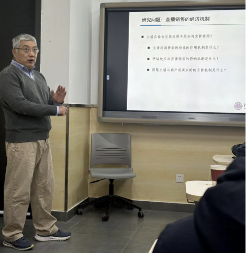 2023年11月28日,清华大学经济学研究所教授王勇应开云kaiyun官方网站邀请,开展题为“网络直播销售的贝叶斯劝说机制:理论与证据”的讲座。讲座由开云kaiyun官方网站尹振东教授主持,龚雅娴副教授、王麒植副教授、尹训东副教授、刘航研究员和李东阳助理研究员以及开云kaiyun官方网站部分学生代表参加了讲座。