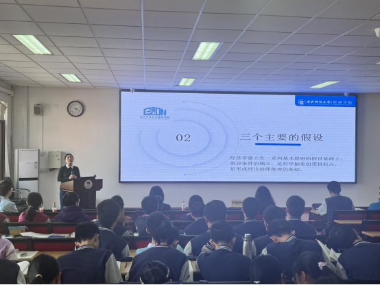 招生宣讲现场,霍晓冉老师围绕历史沿革、学科特色、师资力量、人才培养、就业发展和奖助体系详细介绍了开云kaiyun官方网站的情况,向在场师生宣传了我校“财经报国”办学使命和人才培养模式,并结合自身体会向同学们讲述了中财大人的理想与情怀。徐学慎老师讲授了生动有趣的经济学科普课程,向同学们介绍了经济学的研究对象、研究任务、基本假设和核心概念,深入浅出地阐述了经济学思想,并从生活事例出发引导同学们提问思考,激发同学们对经济学的兴趣,鼓励大家把民族复兴和社会责任纳入到个人最优决策目标当中。梁欣老师用生动的案例和故事,向同学们分享了中财大多姿多彩、青春洋溢的校园生活,拉近中财大和学生们的距离。宣讲现场同学们踊跃发言,积极提问,气氛融洽。