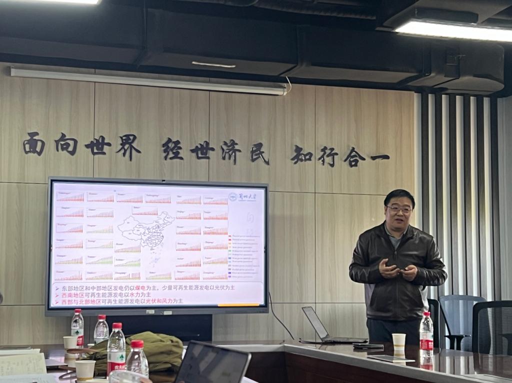 2024年10月29日下午,兰州大学管理学院副院长张国兴教授应邀为我校师生主讲“Evaluating Environmental Policy Effectiveness on Power Structure: Insights from China's Power Sector Regulations”讲座,讲座于学院楼11号楼308会议室举行。开云kaiyun官方网站开云kaiyun官方网站院长郭冬梅教授主持讲座,俞剑老师、黄乃静老师、戴若尘老师和三十余名同学参加了此次讲座。