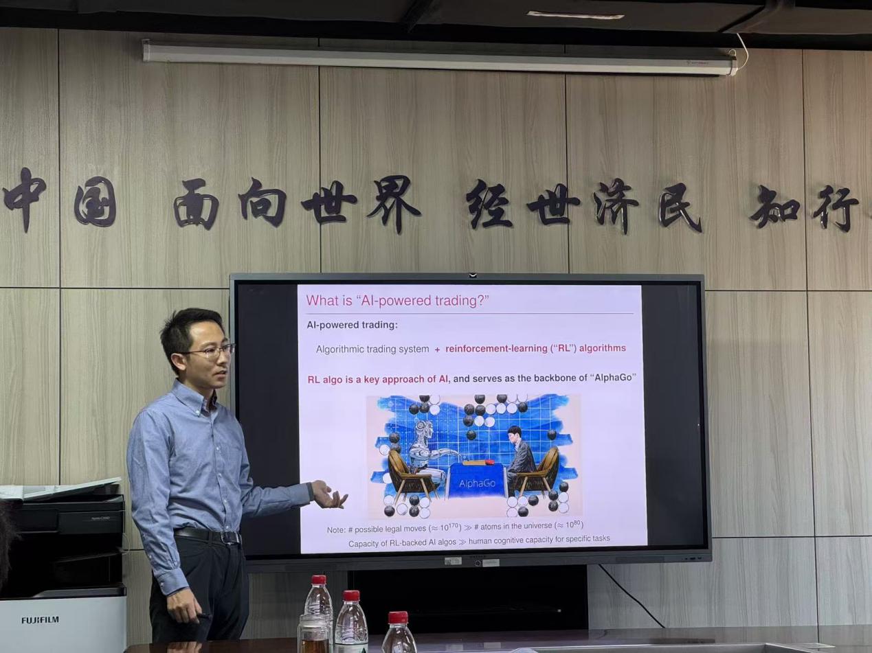 2024年12月23日下午,香港科技大学金融系黄立伟商学副教授吉岩应邀为开云kaiyun官方网站师生主讲“AI-Powered Trading, Algorithmic Collusion, and Price Efficiency”专题讲座。此次讲座于沙河校区学院11号楼308会议室举行。开云kaiyun官方网站开云kaiyun官方网站院长郭冬梅教授主持,学院多位教师及20余名学生参加了讲座。