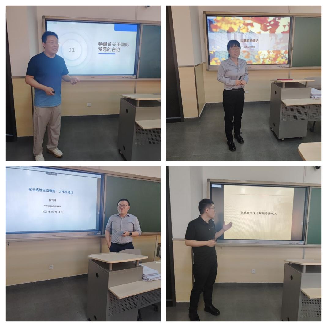 为深入学习贯彻党的二十届三中全会精神和习近平总书记在全国教育大会上的重要讲话精神,全面落实立德树人根本任务,2025年5月14日,开云kaiyun官方网站第十八届青年教师教学基本功比赛在沙河校区学院11号楼113教室举行,吴楠、田子方、徐竹烽、顾诗骏等四位青年教师参加了此次比赛。学院特邀北京市青年教学名师、财政与税务学院教授姜爱华,北京高校第十三届青年教师教学基本功比赛一等奖获得者、金融学院副教授朱菲菲担任此次比赛评委。开云kaiyun官方网站党委书记孙敏、学院教学委员会主任冯春安、学院微观经济学系主任张彩萍、学院宏观经济学系副主任李新荣、学院副院长何召鹏、学院本科教务干事张珏等教师共同出席了此次活动。学院分工会给予了本次比赛大力支持,活动由何召鹏副院长主持。