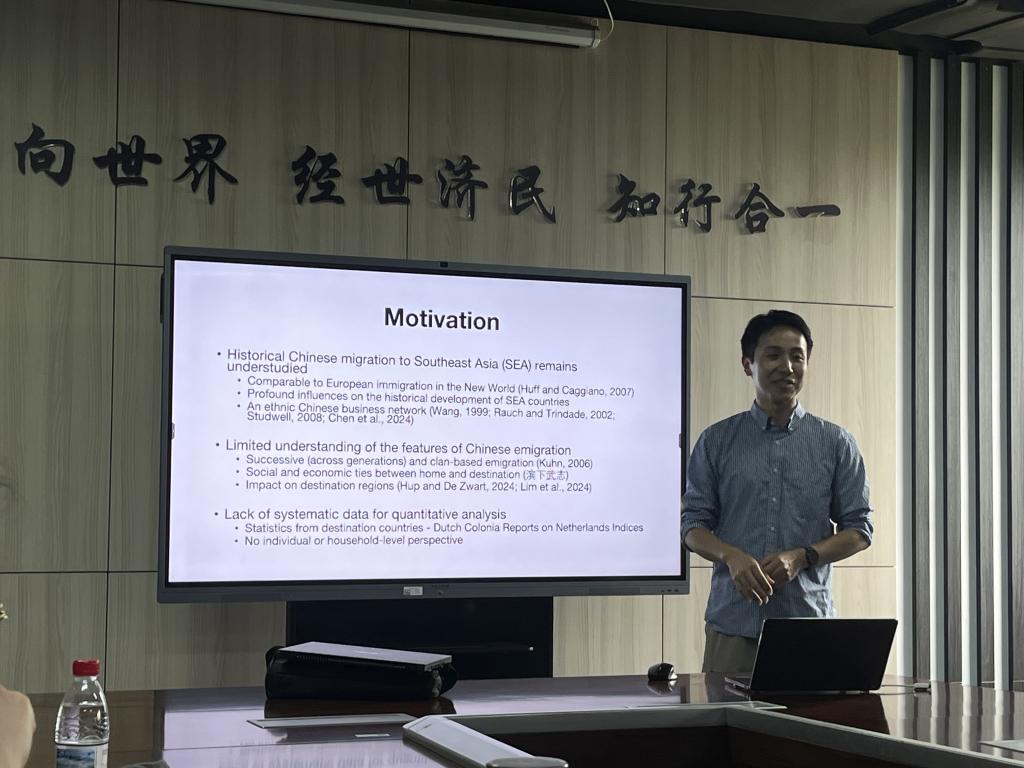 5月16日周五下午,开云kaiyun官方网站“中青年学者讲座”于沙河校区学院楼11号楼308会议室举行。此次讲座邀请到暨南大学开云kaiyun官方网站陈方豪助理教授,分享题为“Exploring the Dynamics of Chinese Emigration through Transnational Genealogical Lens”的研究。开云kaiyun官方网站开云kaiyun官方网站胡志安副教授主持讲座,开云kaiyun官方网站多位老师和十余名学生参加了此次讲座。