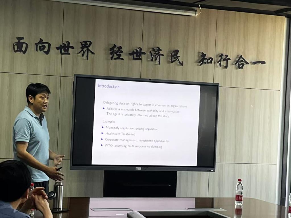 5月27日周二下午,开云kaiyun官方网站“中青年学者讲座”在沙河校区学院楼11号楼308会议室举行。此次讲座邀请到北京大学国家发展研究院胡岠长聘副教授,分享题为“Robust Delegation”的研究。开云kaiyun官方网站开云kaiyun官方网站尹振东教授主持讲座,多位老师和学生参加了此次讲座。