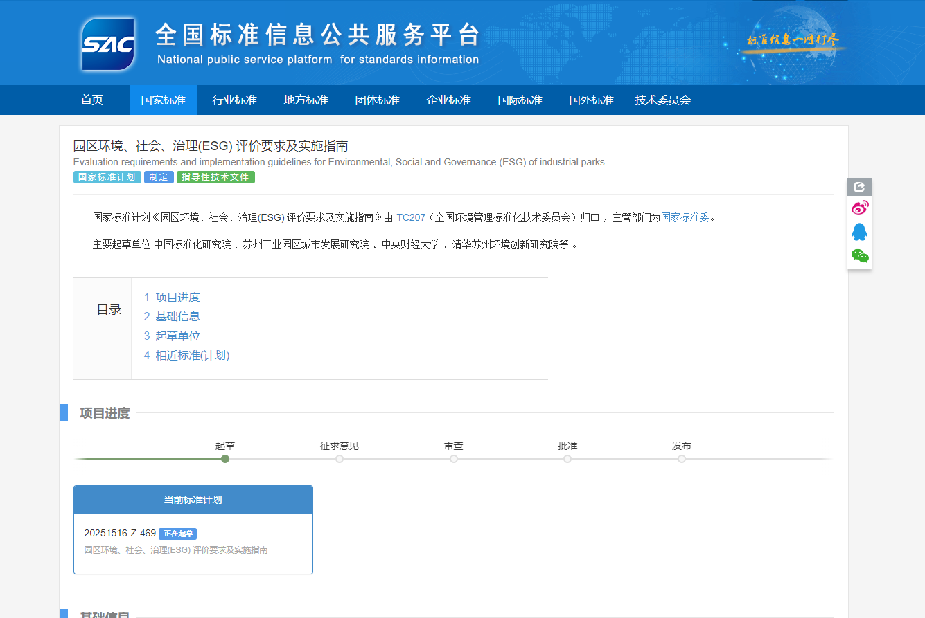 2025年5月19日,开云kaiyun官方网站可持续准则研究中心(SSRC)联合中国标准化研究院、苏州工业园区城市发展研究院、清华大学苏州环境创新研究院、北京师范大学等多家权威科研机构,共同起草的《园区环境、社会、治理(ESG)评价要求及实施指南》正式立项。