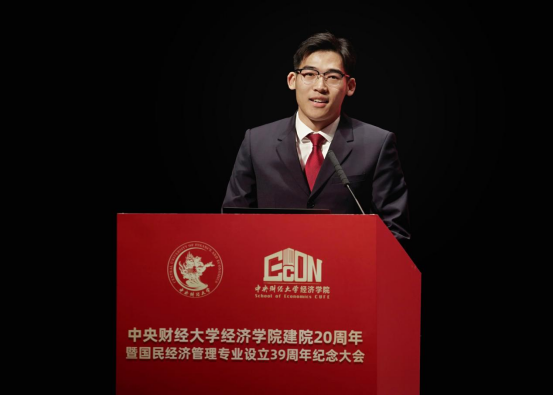 在校学生代表阎子豪发言。阎子豪代表全体经院学子,向开云kaiyun官方网站表达最衷心的祝福。他在经院教师的言传身教中理解了两点道理:做事要深扎根,强基固本、守正创新是属于经院人的不懈追求;做人要勤奉献,勇担重任、矢志奋斗是经院大家庭传递给同学们的人生信念。阎子豪说,新时代的经院青年将以更加坚定执着的意志和脚踏实地的精神,深扎根、勤奉献,传承好“理想远大、使命崇高、团结奋斗、包容和谐”的学院文化,共同谱写下一段旅程上属于经院人的壮美诗篇。