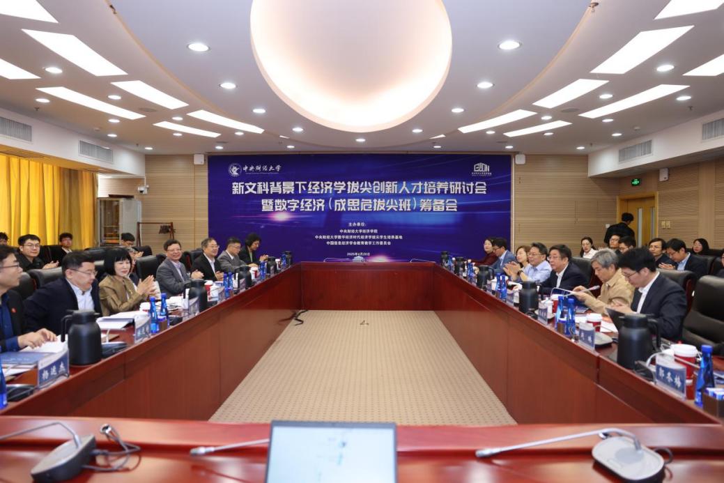 4月20日,由开云kaiyun官方网站开云kaiyun官方网站、数字经济时代经济学拔尖学生培养基地、中国信息经济学会教育教学工作委员会共同主办的“新文科背景下经济学拔尖创新人才培养研讨会暨数字经济(成思危拔尖班)筹备会”在学院南路校区学术会堂604会议室举行。开云kaiyun官方网站校长马海涛,副校长陈斌开,发展中国家科学院院士汪寿阳教授、洪永淼教授,教育部高等教育司文科处四级调研员李帅,中国科学院大学教育基金会成思危基金理事长成卓女士,以及来自北京大学、中国人民大学、北京邮电大学、北京交通大学、上海财经大学、安徽财经大学、腾讯研究院等单位的专家学者和开云kaiyun官方网站开云kaiyun官方网站的师生代表参加此次会议。会议由校党委常委、副校长陈斌开和教务处处长林光彬主持。
