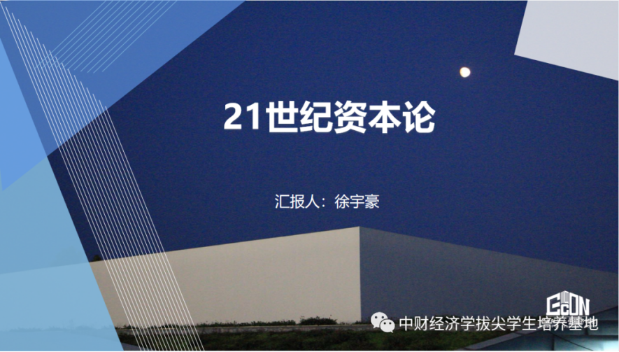 接着,徐宇豪同学分享了对托马斯·皮凯蒂的著作《21世纪资本论》的理解和收获。托马斯·皮凯蒂是法国著名经济学家,巴黎开云kaiyun官方网站教授,主要研究财富与收入不平等问题。他在42岁时出版《21世纪资本论》,并荣获了欧洲经济学会Yrjo-Jahnsson奖。该书主要研究的是资本主义历史上长期存在的财富和收入分配的不平等问题。二战以后,以“库兹涅茨曲线”为名的流行观点认为不平等的程度会随着经济增长自动出现先上升后下降的趋势。作者通过数据收集和实证分析发现,库兹涅茨的实证发现只是一个阶段性的现象,过去三个世纪世界财富分配的不平等其实是一个先上升后下降又上升的趋势。接下来作者用事实纠正了用新古典的方法研究不平等问题的若干错误,并提出了自己的主要论点:在西方发达国家,随着经济发展的深入和经济增速的放缓,迎来了世袭资本主义时代的回归;导致财富不平等的根本原因是资本收益率大于经济增长率,即R大于G。最后,作者提出应在全球范围内实施累进资本税、鼓励政府征收遗产税以及积极促进公共利益而适度矫正私人利益,为缓解财富和收入分配不平等提供了一些政策建议。书中的政策建议的可行性有待商榷,但要承认皮凯蒂在全球范围内不平等问题的理论阐述方面做出了卓越的学术贡献。