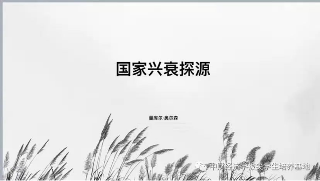 杨骏哲同学向我们汇报的书籍是曼瑟尔·奥尔森著的《国家兴衰探源》。该书的写作基于以下问题:国家为什么会有兴衰?不同的国家为什么会有不同的经济增长速度?同一国家于不同的历史时期为什么发展有快有慢?第二次世界大战以后,遭受严重破坏的西德、日本为什么会如此迅速崛起?英国为什么会衰落?为什么西方社会会有滞胀、失业和经济周期……对上述问题各个领域的学者都作出了一些不同的解释,但在作者看来这些解释都是肤浅的,并没有找到最终根源。而作者通过分析每个国家兴衰之间的共性,提出了自己独特的观点,这就是分利集团的角度解释这些问题。在作者看来,像行会、工会、卡特尔以及议会院外活动集团等这样一些分利集团会影响经济增长,阻碍技术进步和资源合理配置,成为影响国家兴衰的原因。