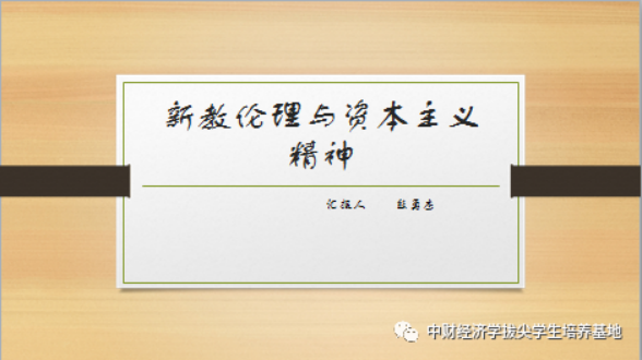 熊勇杰同学就8月19日读书会的分享做了补充以及进一步的讨论。主要向大家讲解了《新教伦理与资本主义精神》的第二部分禁欲新教与职业伦理。在这一部分马克思·韦伯从上帝预选之说讲起,阐明了加尔文教派的义证思想是如何使其教徒沉浸到此世的彻底理性化思索,进而产生了强大的伦理激活力。后又详述了新教徒受其宗教基础下的财富观影响而产生的职业观。到此,基本回答了第一部分中"宗教信仰与天职观"的关系问题。在第二部分,我们将看到思想在历史中是如何一步步影响人们的行动的,并感受到马克思·韦伯对其祖国、对人类命运的强烈关怀。(第一部分内容详情见8月19日读书会内容推送)